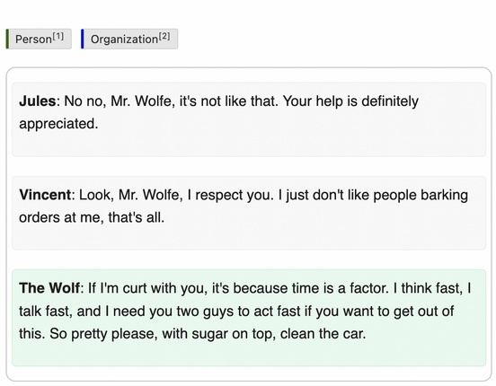 - Labels: Currently includes “Person” (green) and “Organization” (blue).