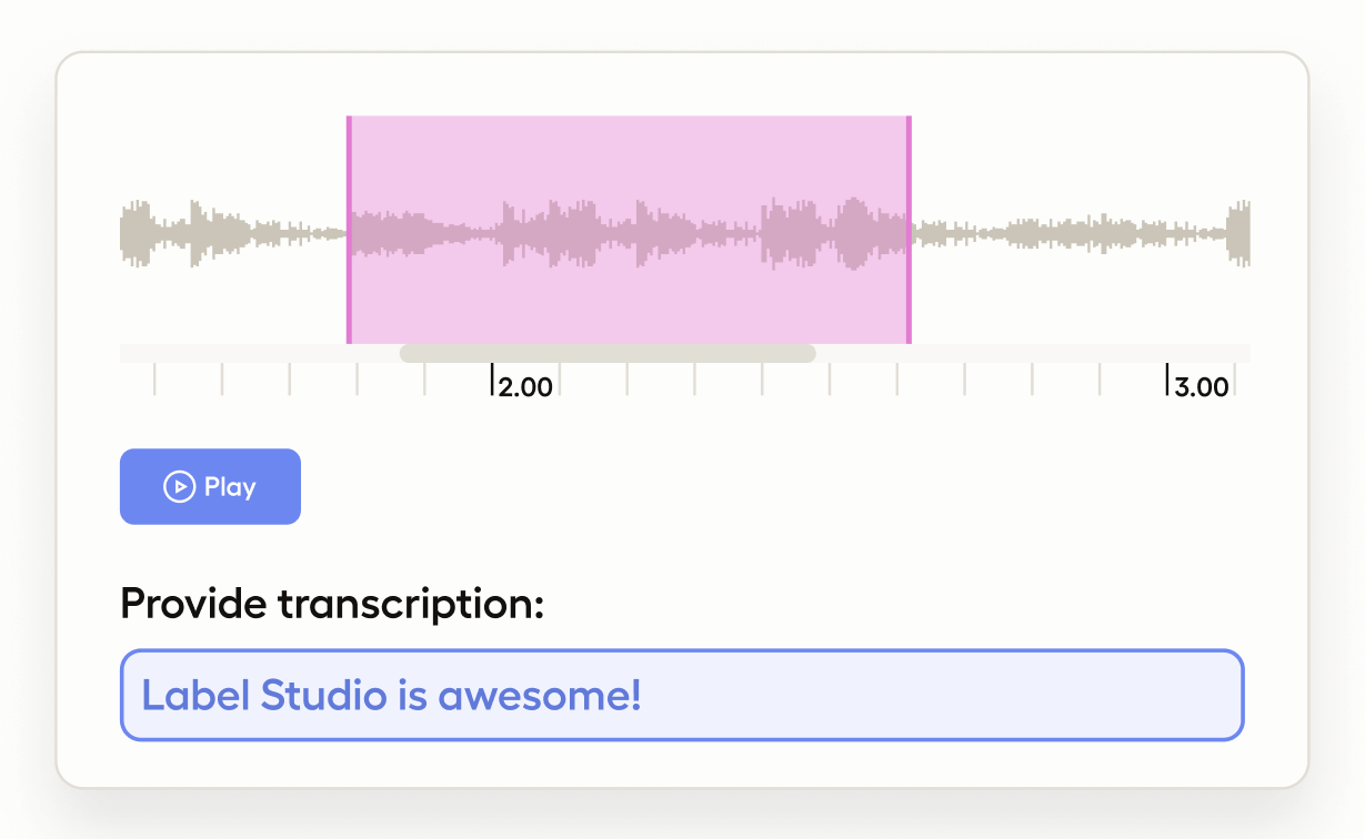 The rows="4" argument lets you configure the size of the text box visible on the labeling interface. The maxSubmissions="1" argument limits the maximum number of transcripts submitted by an annotator for the audio clip to one, while the editable="true" argument allows annotators to edit the transcript.